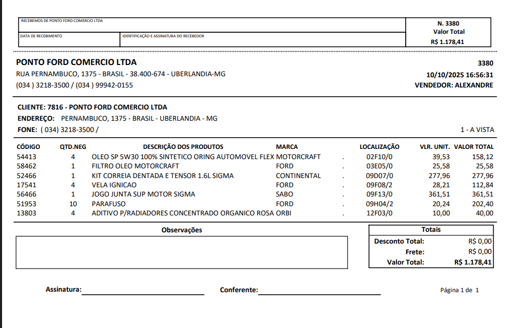 Achei tudo que precisava. Ótimo atendimento e produtos originais Ford recomendo.