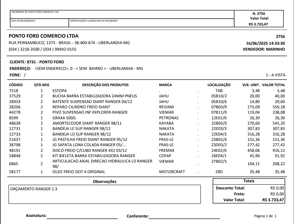 Achei tudo que precisava. Ótimo atendimento e produtos originais Ford recomendo.